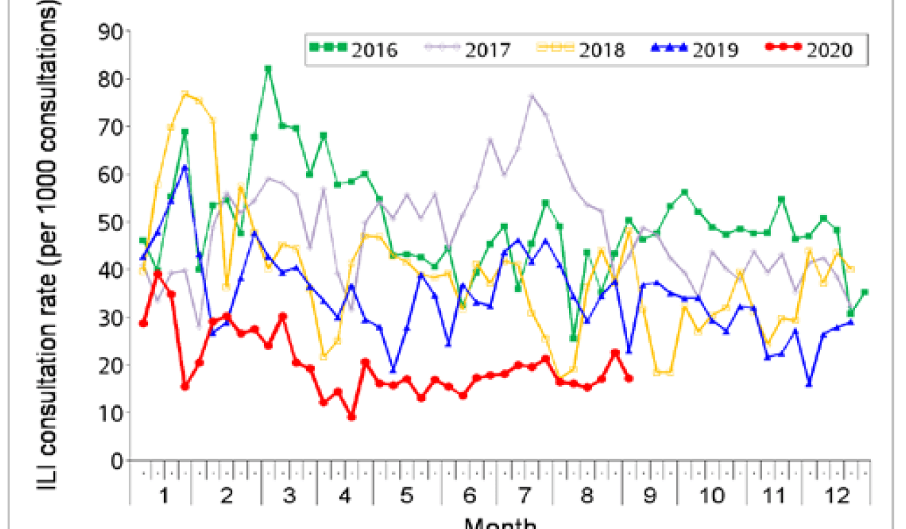 Many people in Hong Kong are wondering when to expect the next outbreak of COVID-19. Owing to limited scientific data, we can only rely on what we already have to make realistic estimation. One of the approaches is to refer to the trends of seasonal influenza in Hong Kong. According to the Centre for Health Protection (CHP), as in September 2020, we can obtain the data of confirmed influenza cases in Hong Kong (refer to the graph below). It is observed that since 2016, the peak of seasonal flu in winter was somewhat between January and May (more apparent from January to March); whereas, the seasonal flu in summer peaked somewhat between June and August (more apparent in July). It is also noteworthy that in some years, such as 2018 and 2020, there was no summer season; while in 2016, there was a peak in Autumn instead.