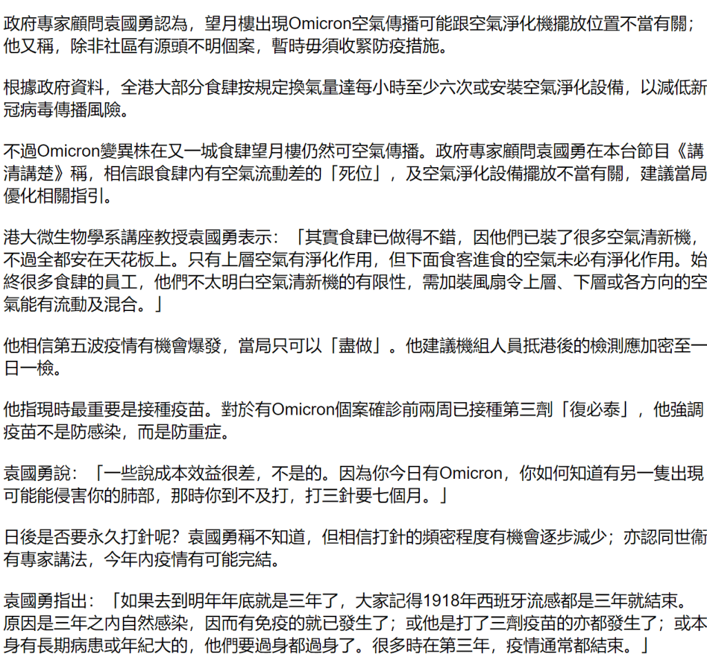 Third, according to Prof KY Yuen, for a pandemic, there should be an end. Considering the Spanish Flu, the pandemic lasted for approximately three years. On 24 December 2020, I mentioned that a virus, including SARS-CoV-2, could evolve to be more infectious but less deadly. Although, I still believe in it, I have to emphasize that it is definitely a tough process: many might get seriously ill and some might even die.