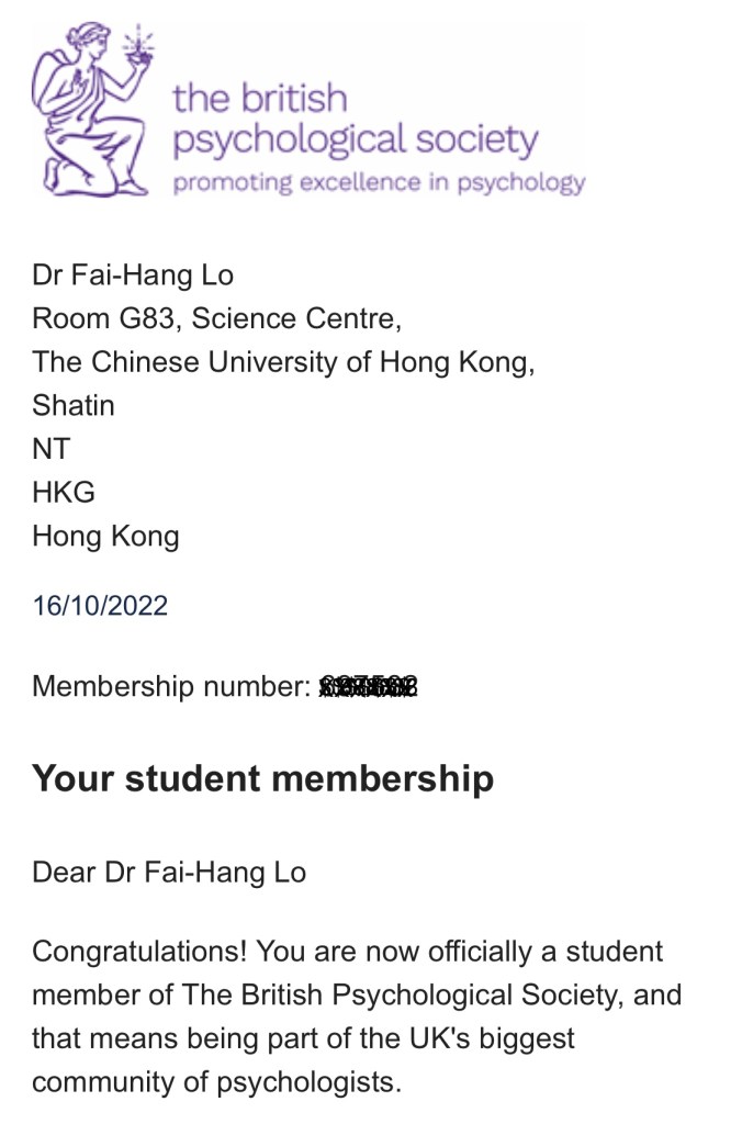 I often told my students that the nature of my work made me become a psychologist, for example, I did review articles related to psychology. Today, I made a big step to realize this statement to join the British Psychological Society (BPS) as a student member, with interest in educational psychology and occupation psychology. Hopefully, I will participate in the activities of BPS and acquire more useful skills to develop my career.