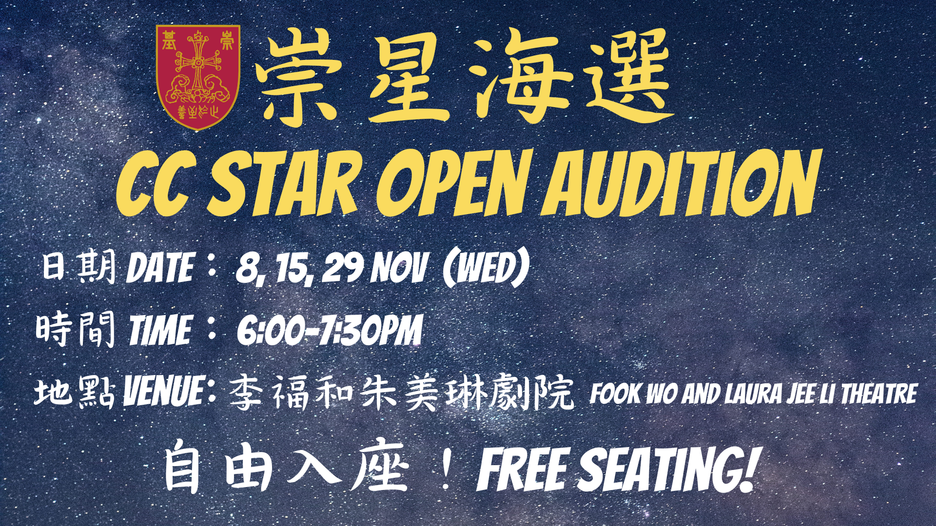 I have the pleasure to serve as a judge of CC star. I was one of the three judges on 15 November (Wednesday) and there were plenty of interesting performance from our students in Chung Chi College. It was a nice experience for me as a science teacher. I am looking forward to the final round, where there will be some best of the best performance.