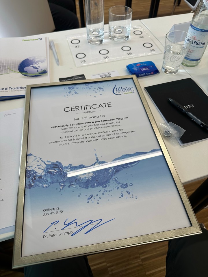 Uncategorized Water sommelier It was my personal aspiration to be a certified water sommelier and it was eventually achieved in the summer of 2025. Share this: Click to share on X (Opens in new window) X Click to share on Facebook (Opens in new window) Facebook Like Loading...