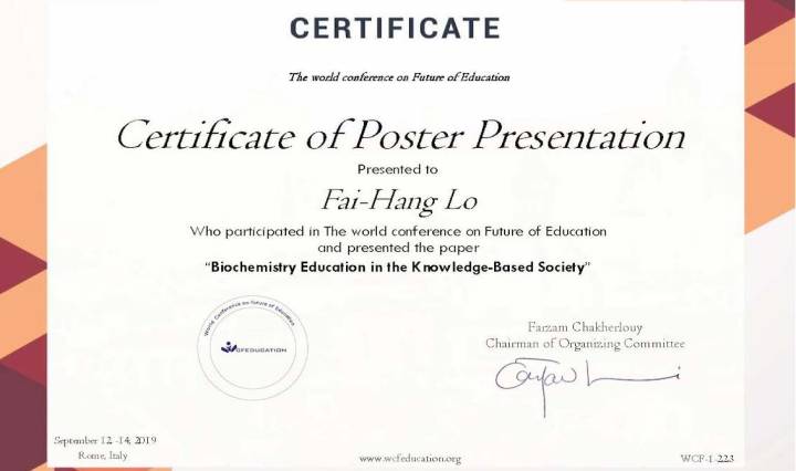 I have submitted a poster titled ‘Biochemistry education in the knowledge-based society‘ to the ‘World Conference on Future of Education‘ held in Rome between 12 and 14 September 2019. The poster concludes my naïve ideas over the years. Specifically, these … Continue reading World Conference on Future of Education 2019